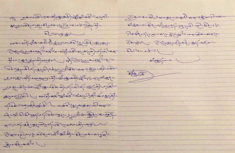 這是經由喇嘛達西於2015年5月2日轉達尊寶上師明珠仁波切的親筆函
