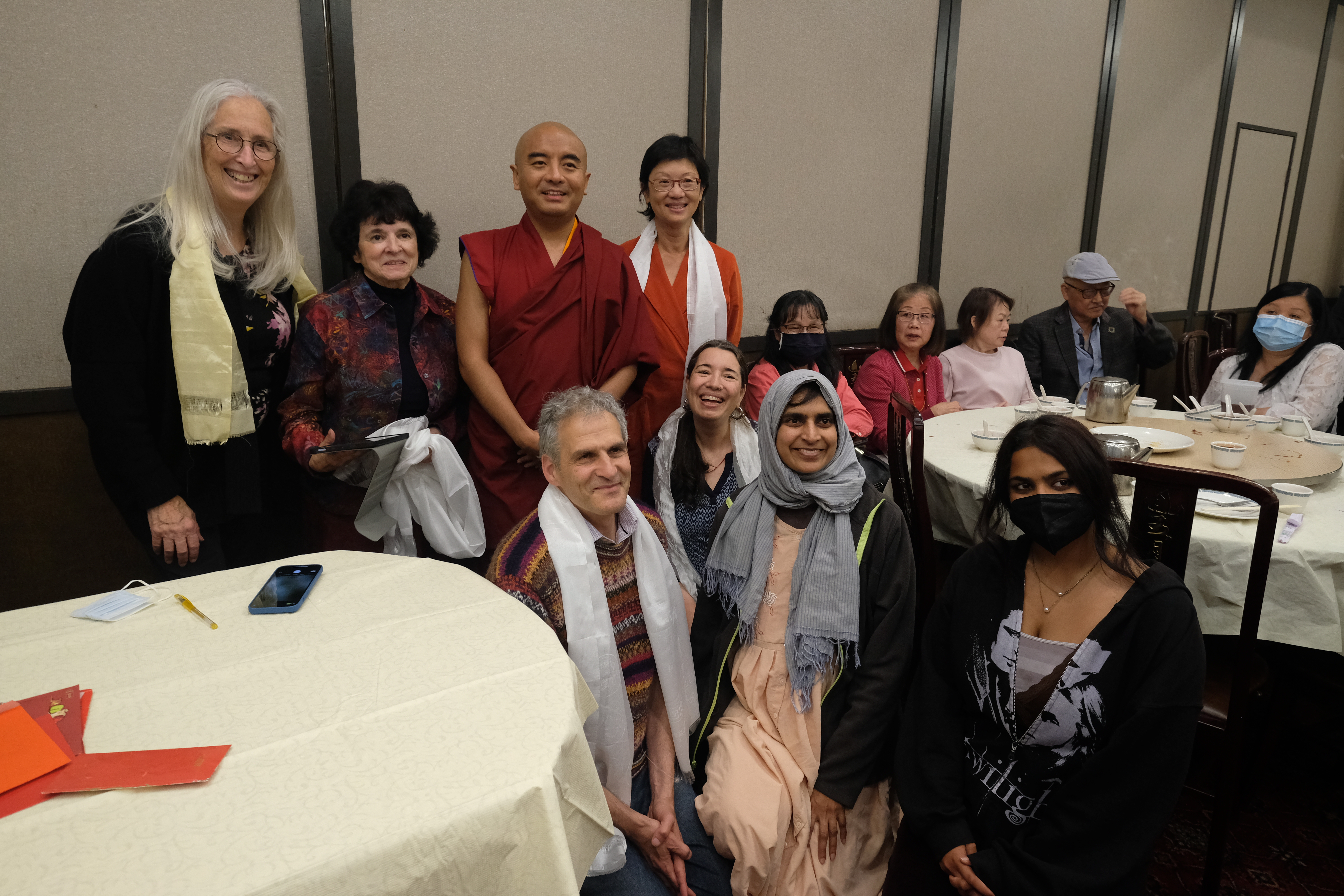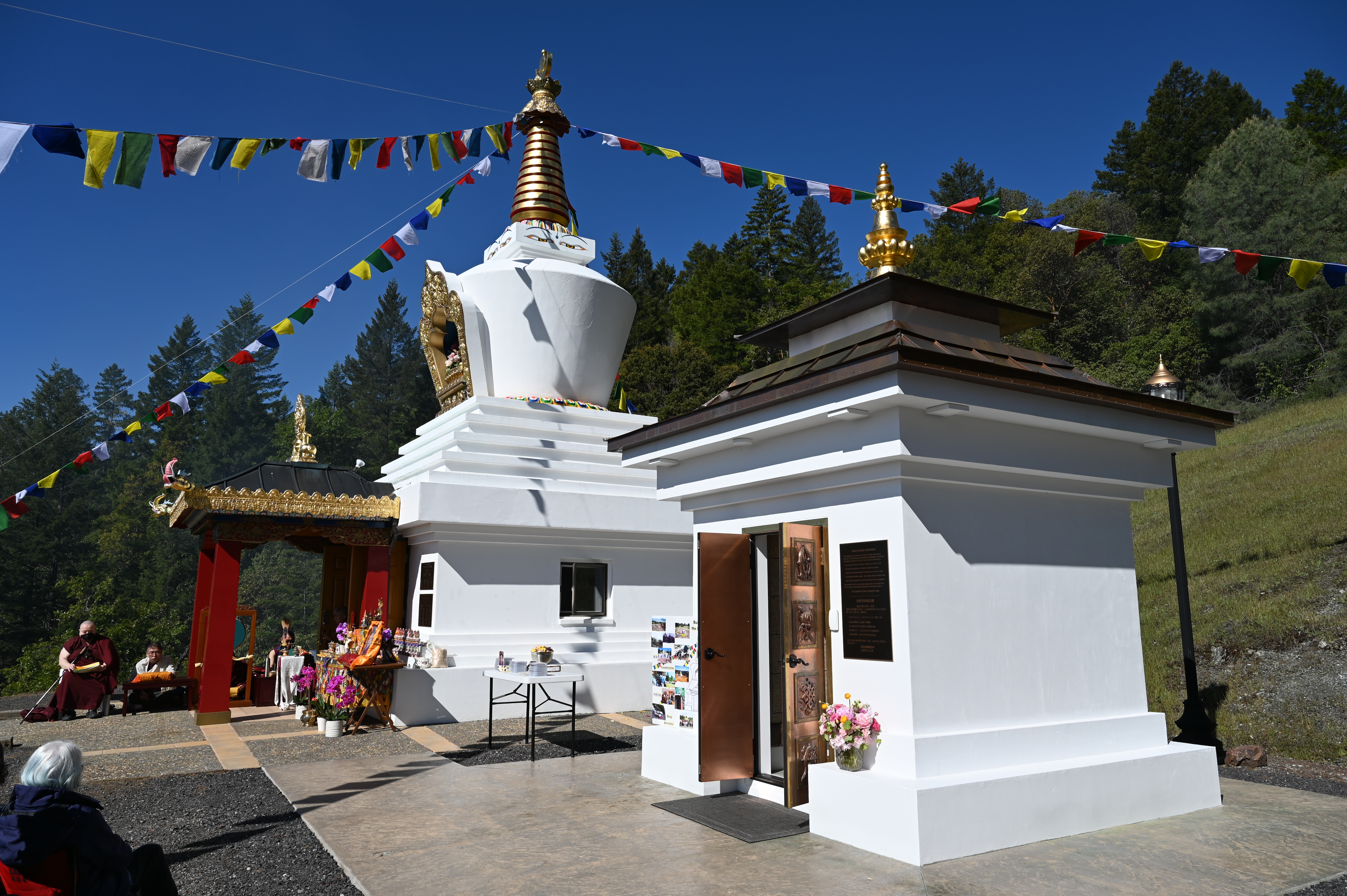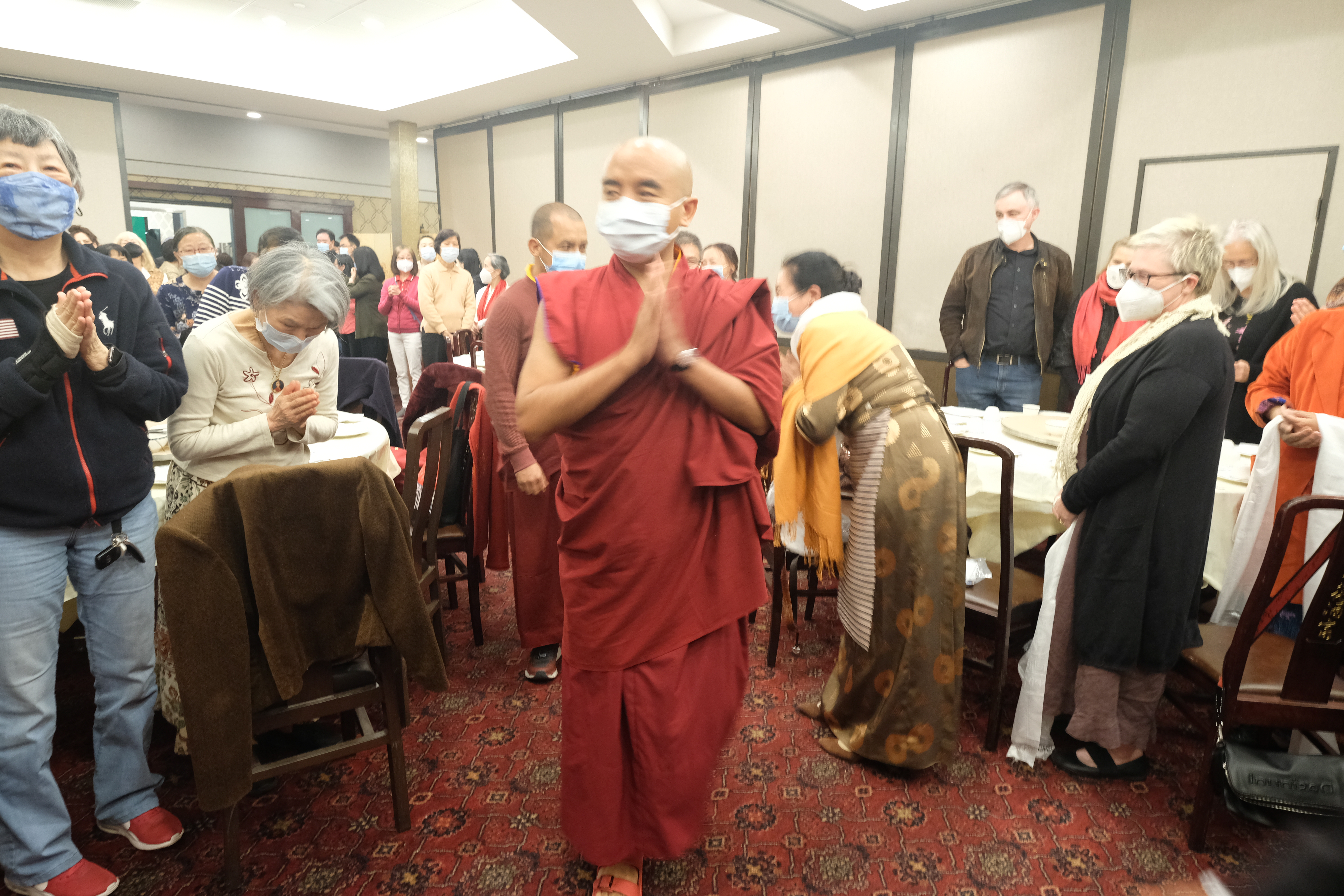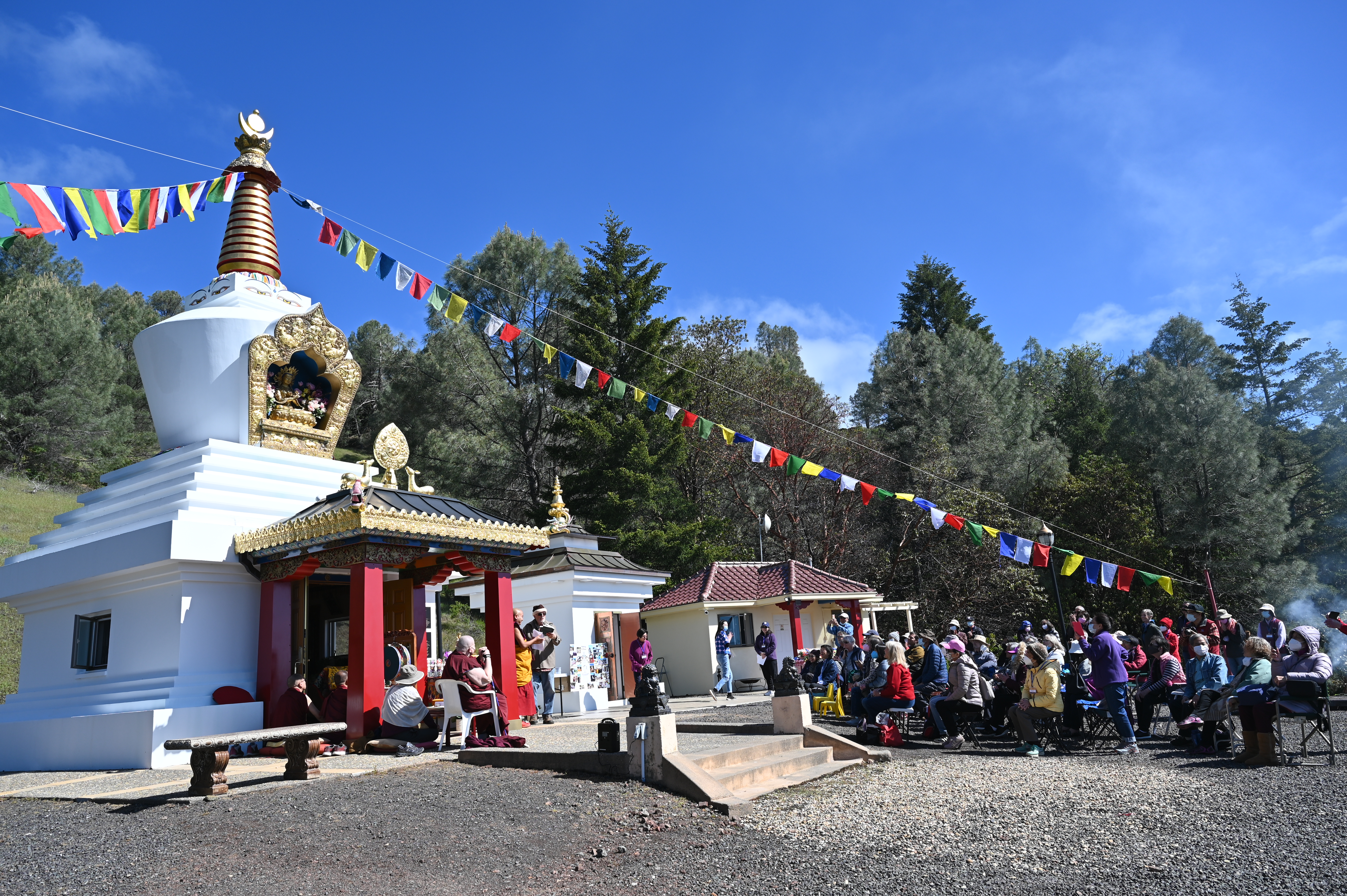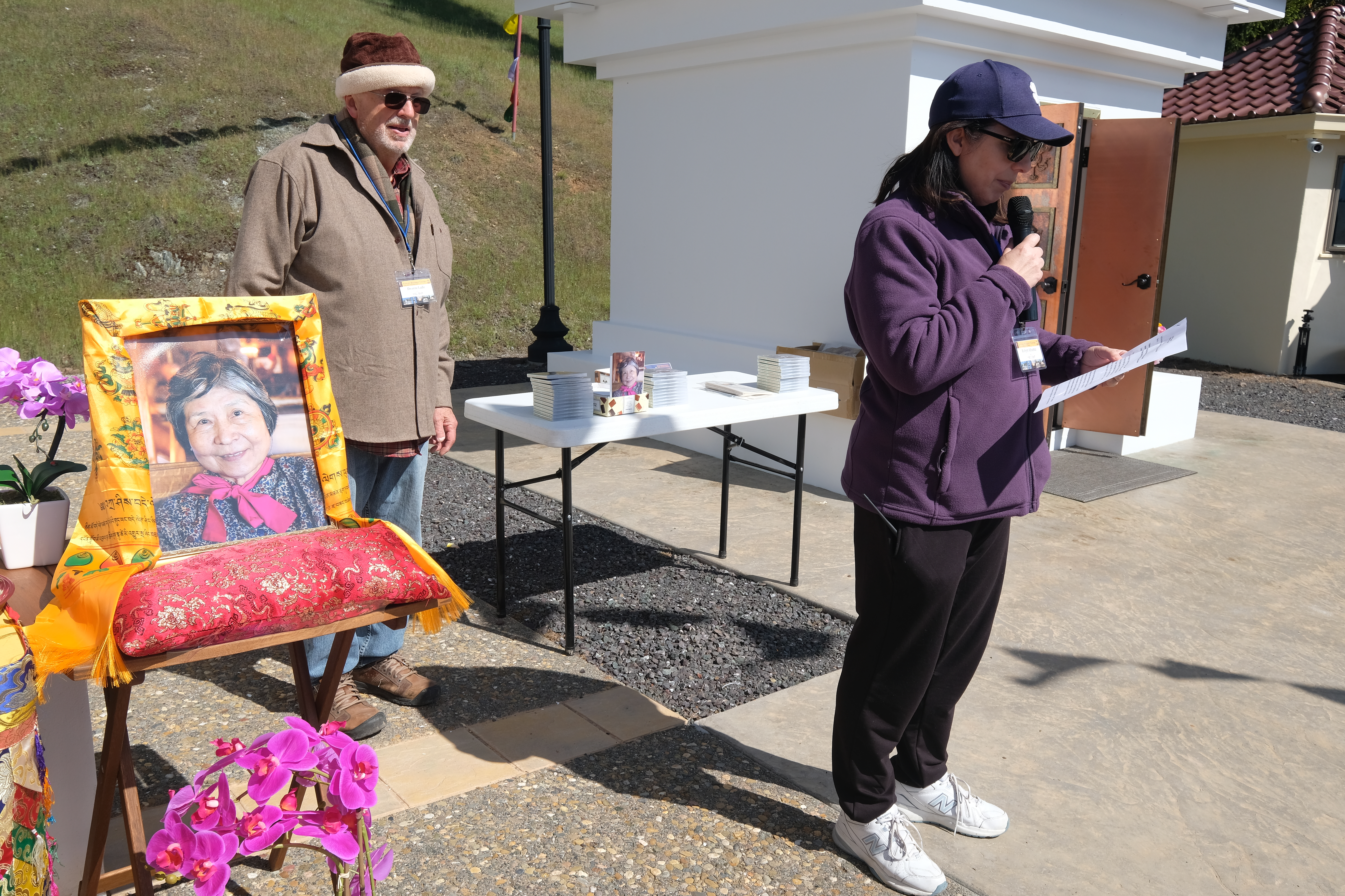 我們很高興的歡迎尊貴的詠給明珠多傑仁波切到訪吉祥金剛總持林閉關中心為多傑吉祥母紀念館舉行開光祝禱儀式。在開光祝禱儀式之前,5月8日星期日舉行了一場歡迎宴會,歡迎仁波切在三年的限制和封鎖之後的來訪。120多名學員和朋友們在Milpitas的五月花餐廳熱烈的歡迎仁波切。第二天早上,仁波切前往吉祥金剛總持林幫助詠給妙覺佛教中心的工作人員為開光祝禱儀式做準備。天氣又冷又下雨,但終於放晴了。