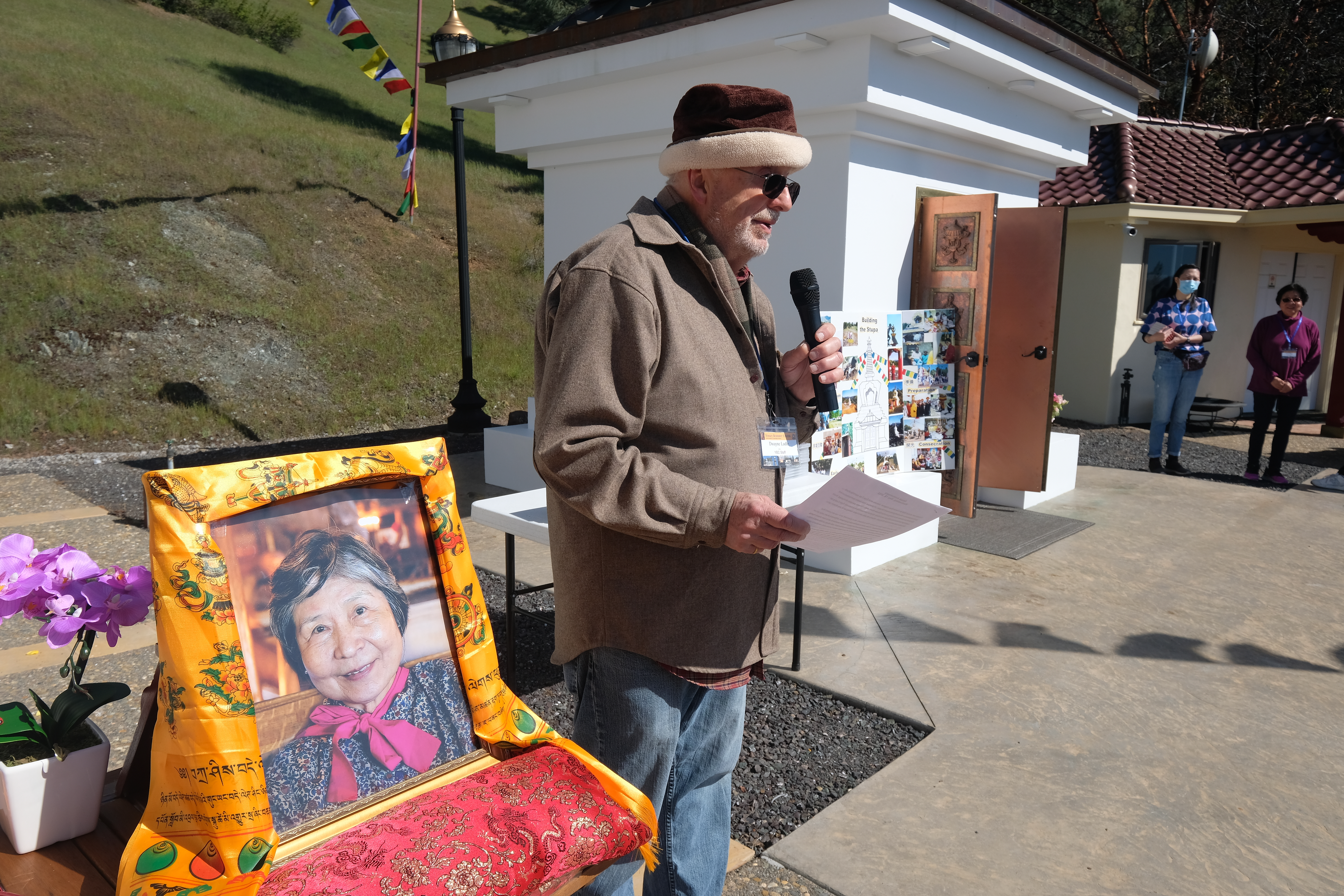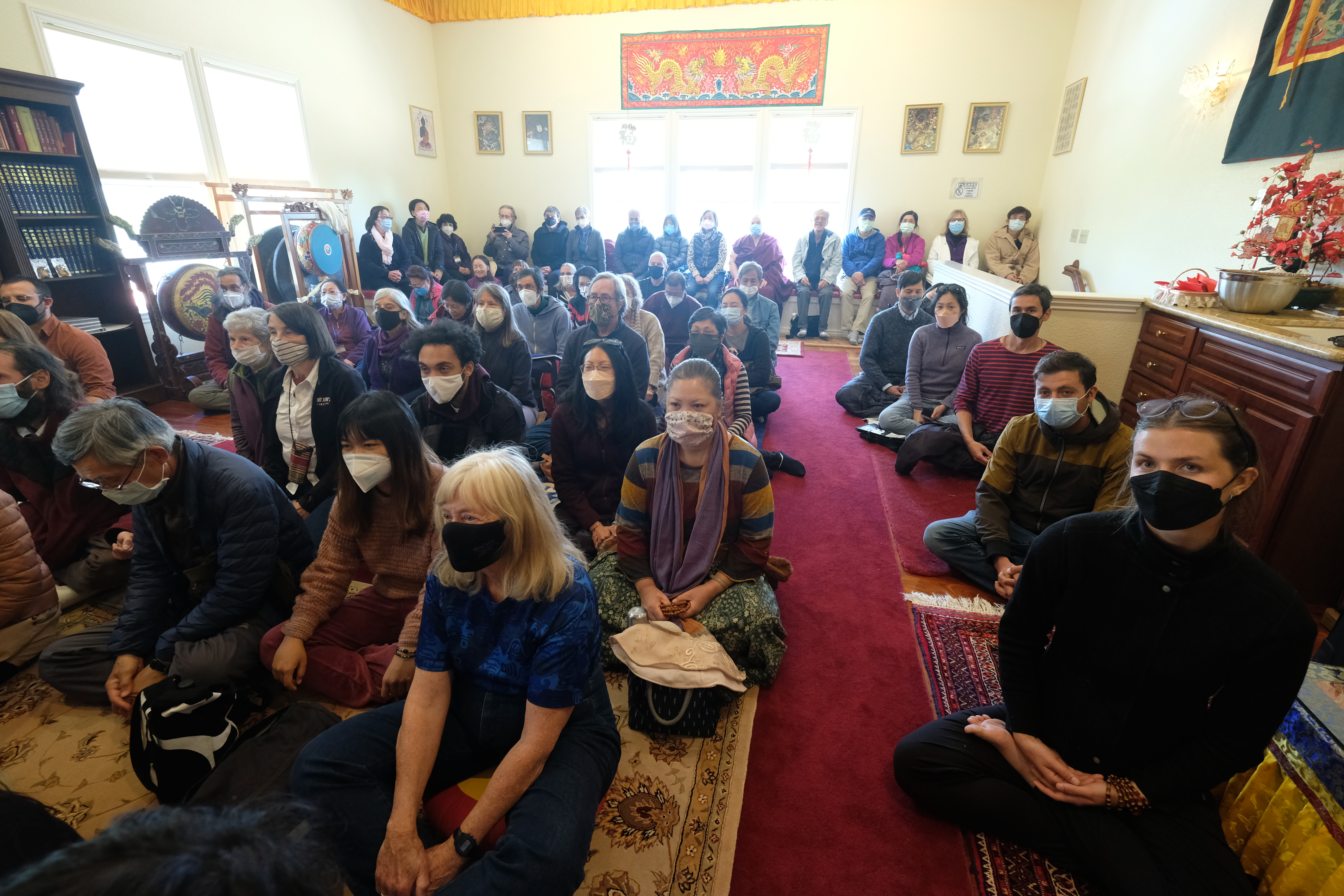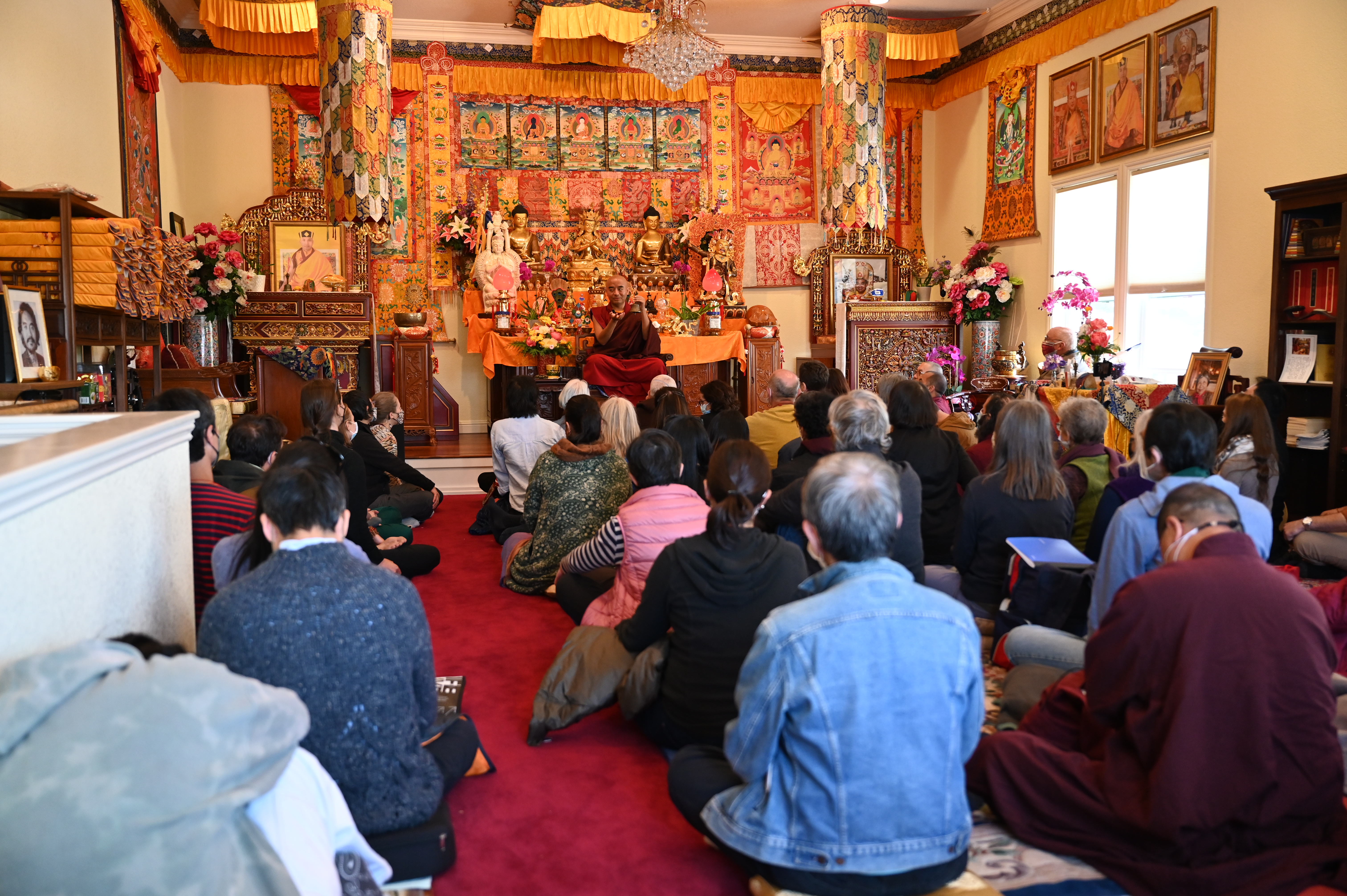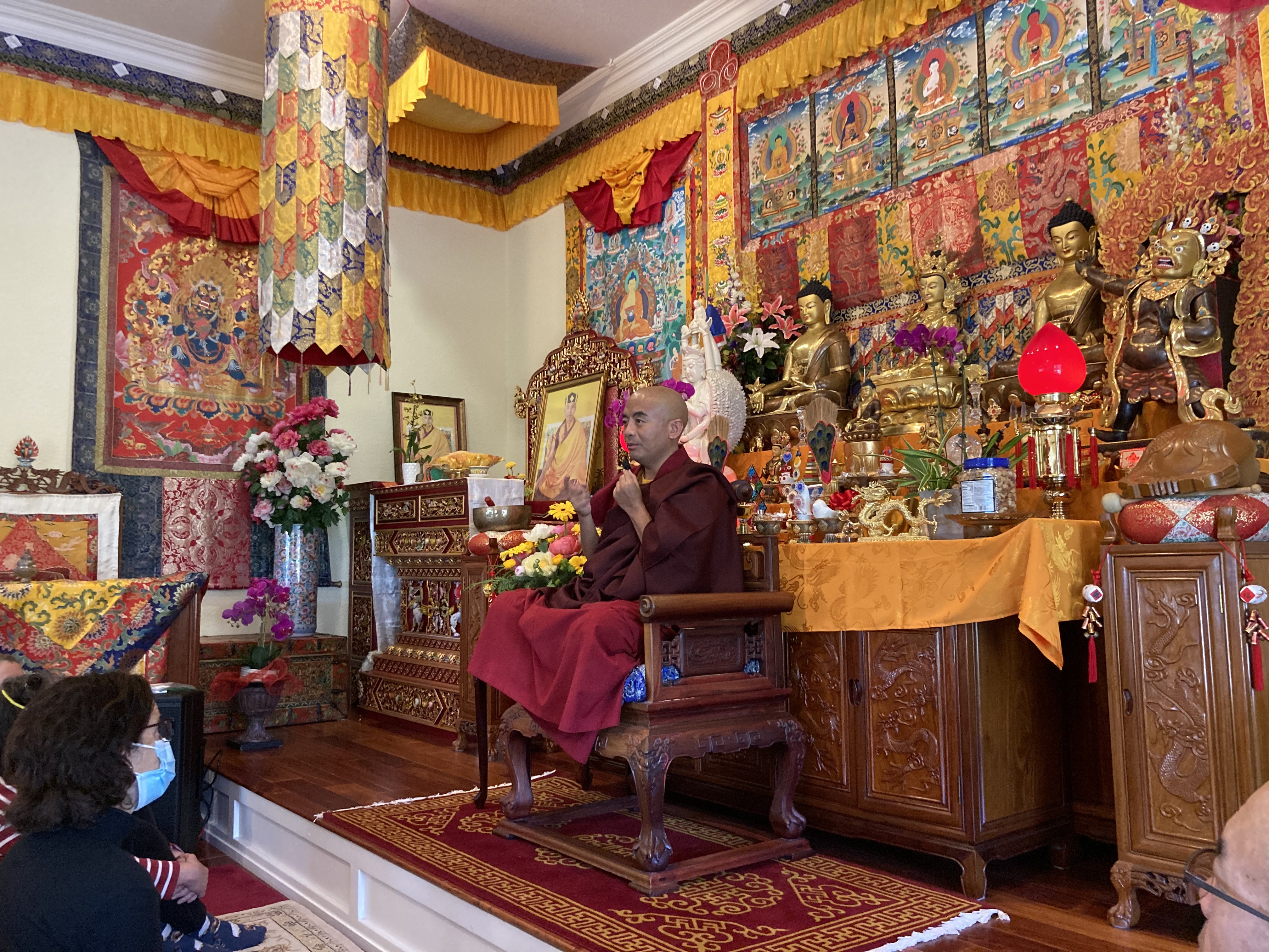 我們很高興的歡迎尊貴的詠給明珠多傑仁波切到訪吉祥金剛總持林閉關中心為多傑吉祥母紀念館舉行開光祝禱儀式。在開光祝禱儀式之前,5月8日星期日舉行了一場歡迎宴會,歡迎仁波切在三年的限制和封鎖之後的來訪。120多名學員和朋友們在Milpitas的五月花餐廳熱烈的歡迎仁波切。第二天早上,仁波切前往吉祥金剛總持林幫助詠給妙覺佛教中心的工作人員為開光祝禱儀式做準備。天氣又冷又下雨,但終於放晴了。