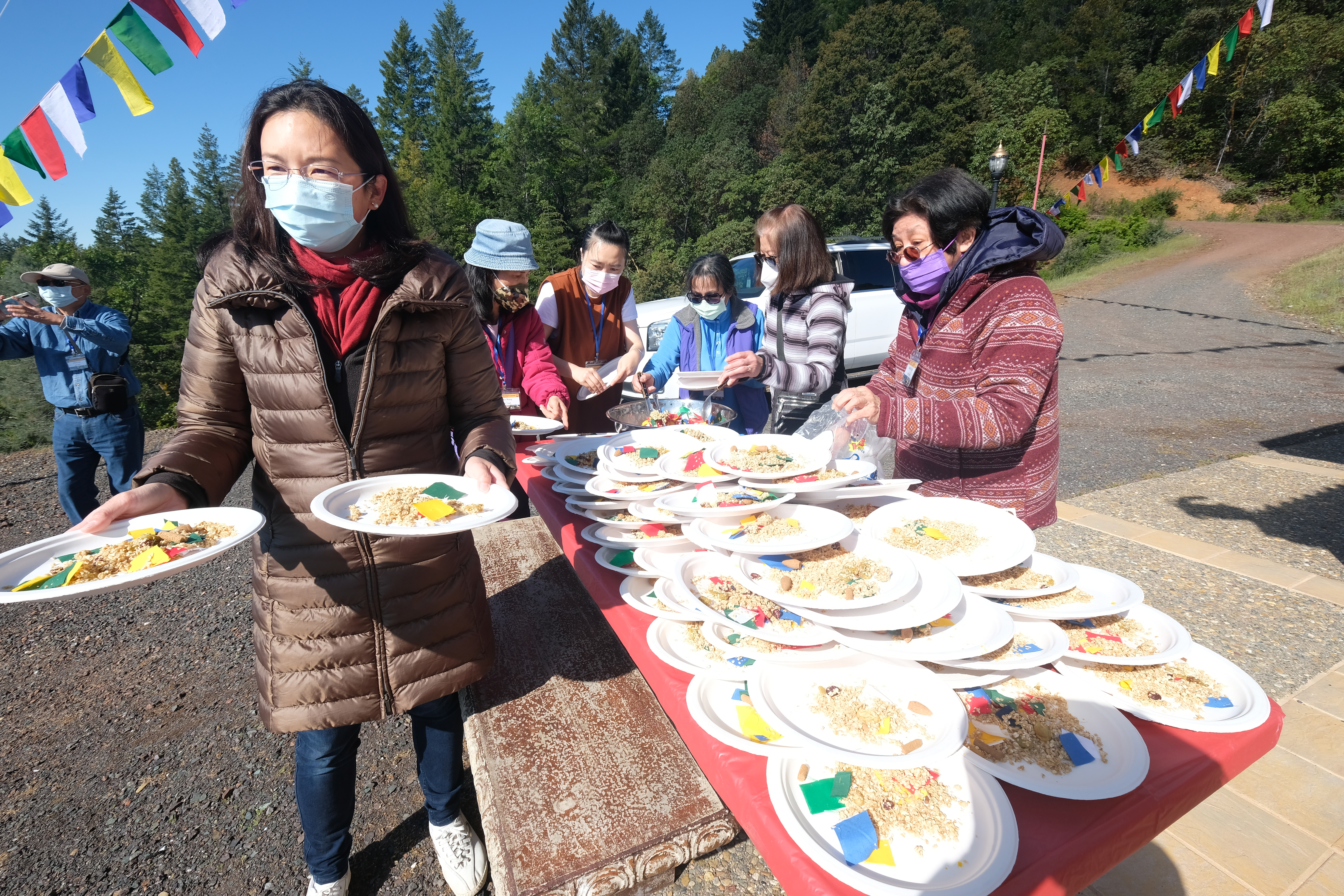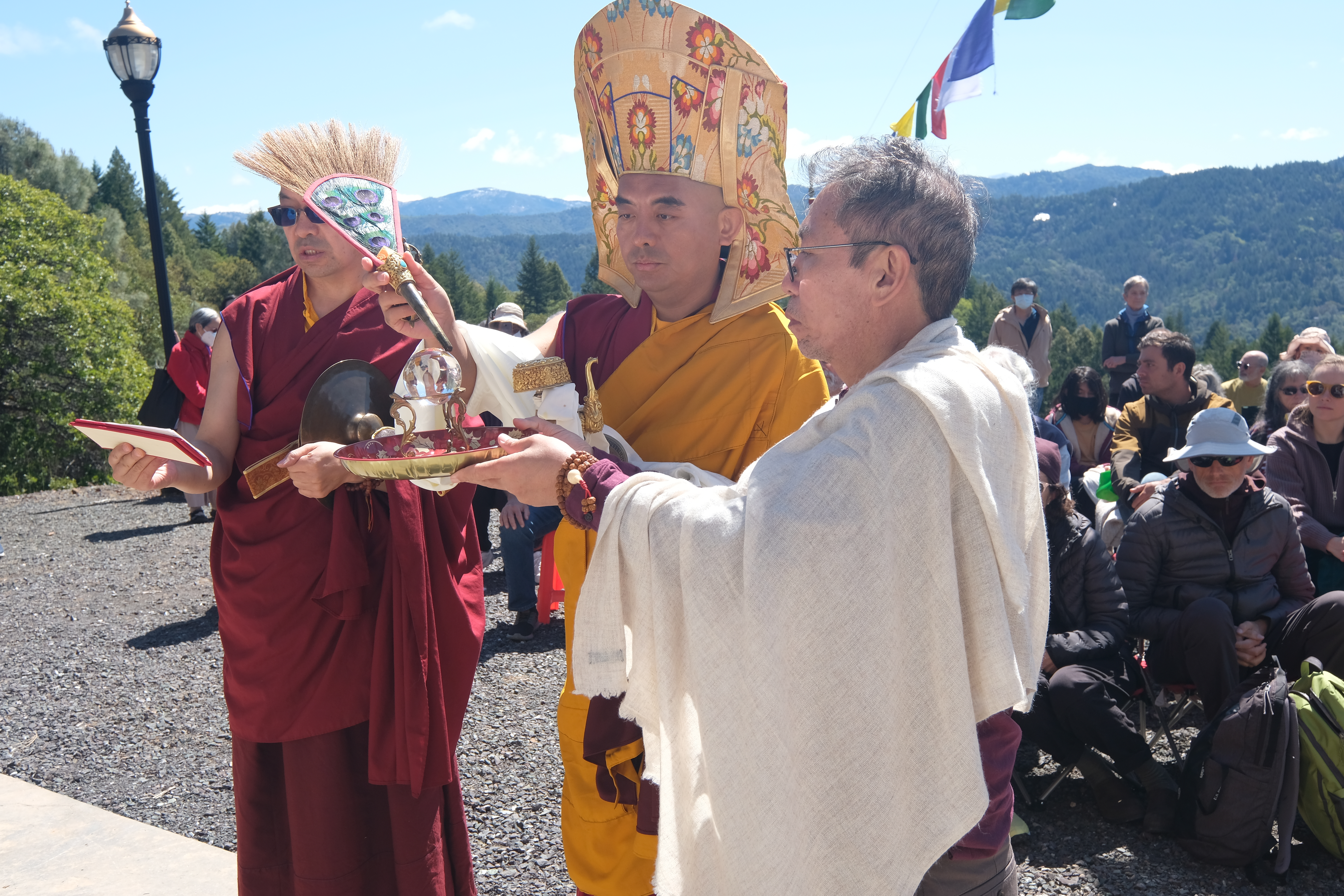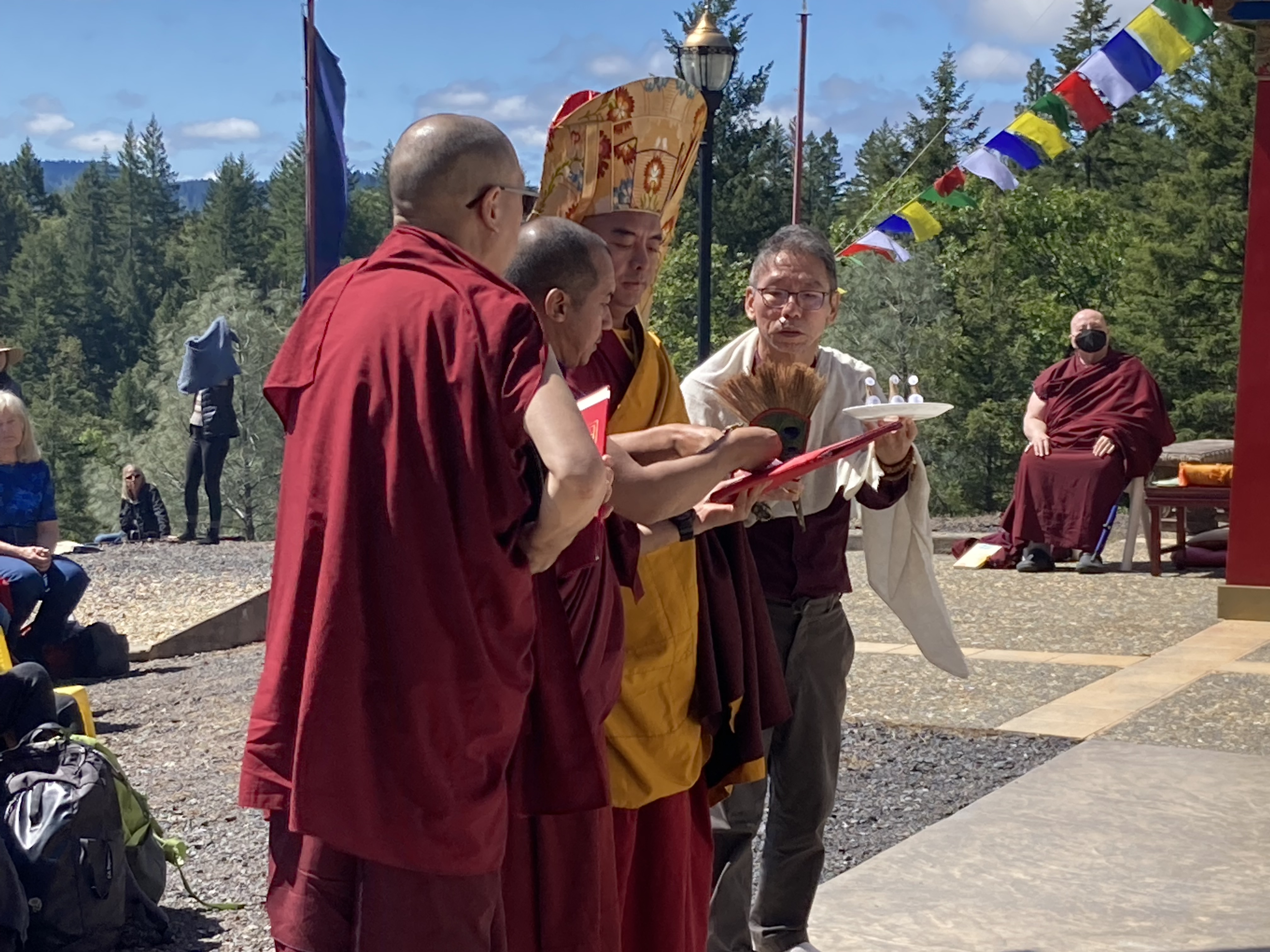 儀式結束後,大家沿著正覺步道前往主屋,享用素食午餐。下午,仁波切在佛堂開示了禪修、阿彌陀佛和淨土。 當天的活動以向仁波切獻哈達結束。