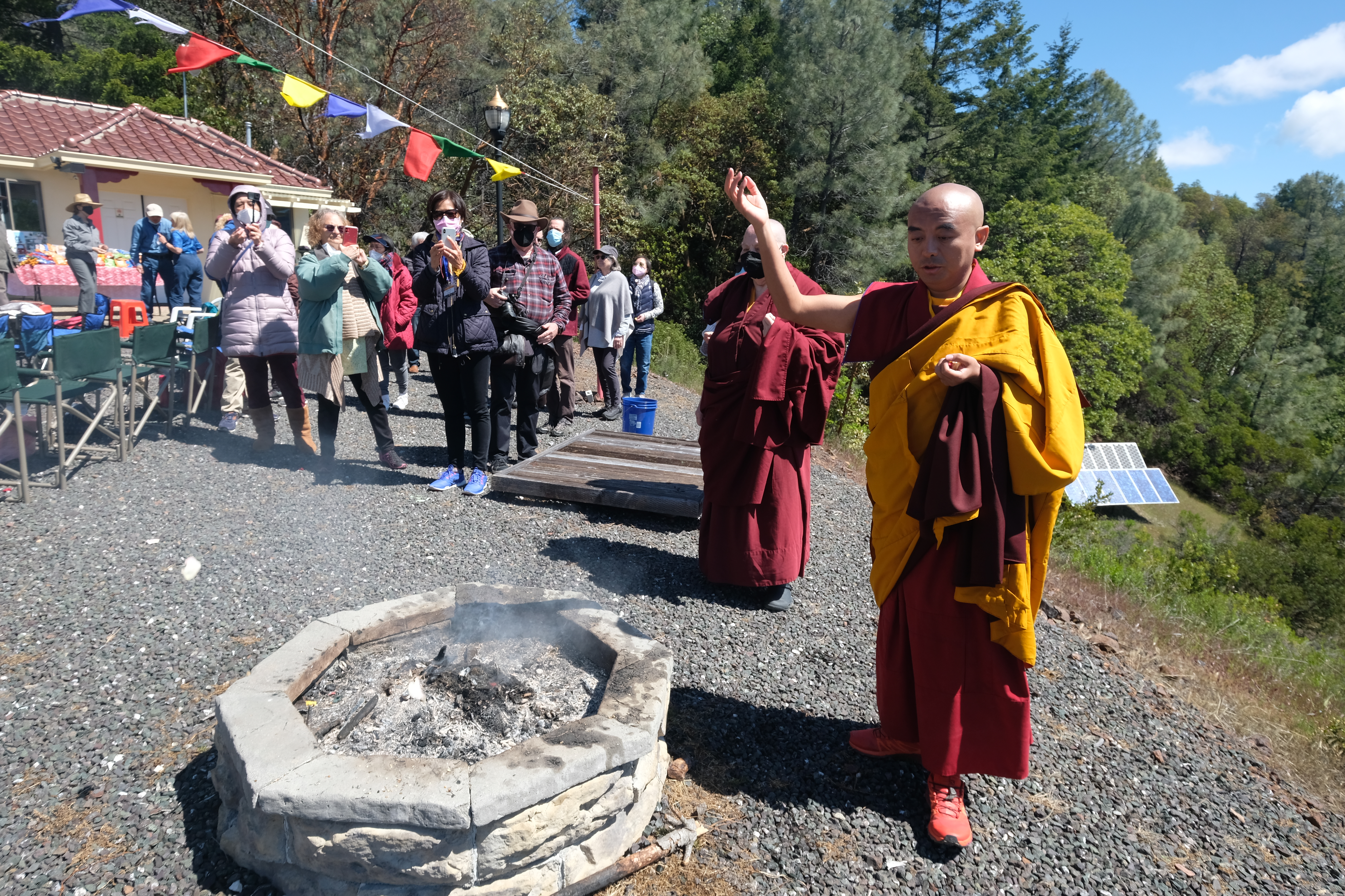首先舉行火供法會,由仁波切帶領祈禱,每個人都繞著佛塔,將他們手中的供品投入火中。 隨後為於2001年5月19日開光建立的正覺塔成立了二十週年,舉行了一個簡短的紀念儀式。佛塔的最初捐贈者和建造者受到了表彰,仁波切更談到了吉祥金剛總持林閉關中心佛塔的重要性。