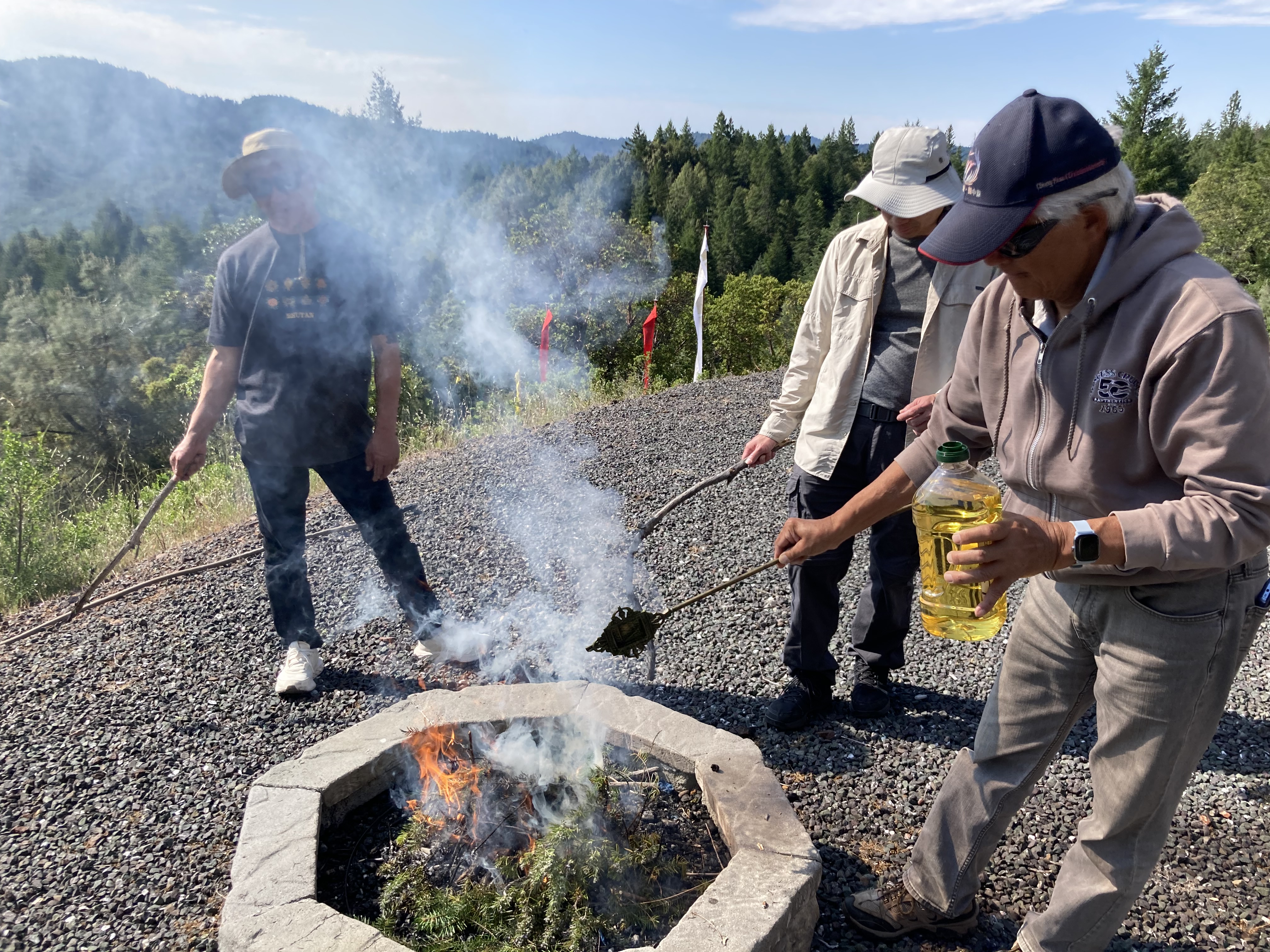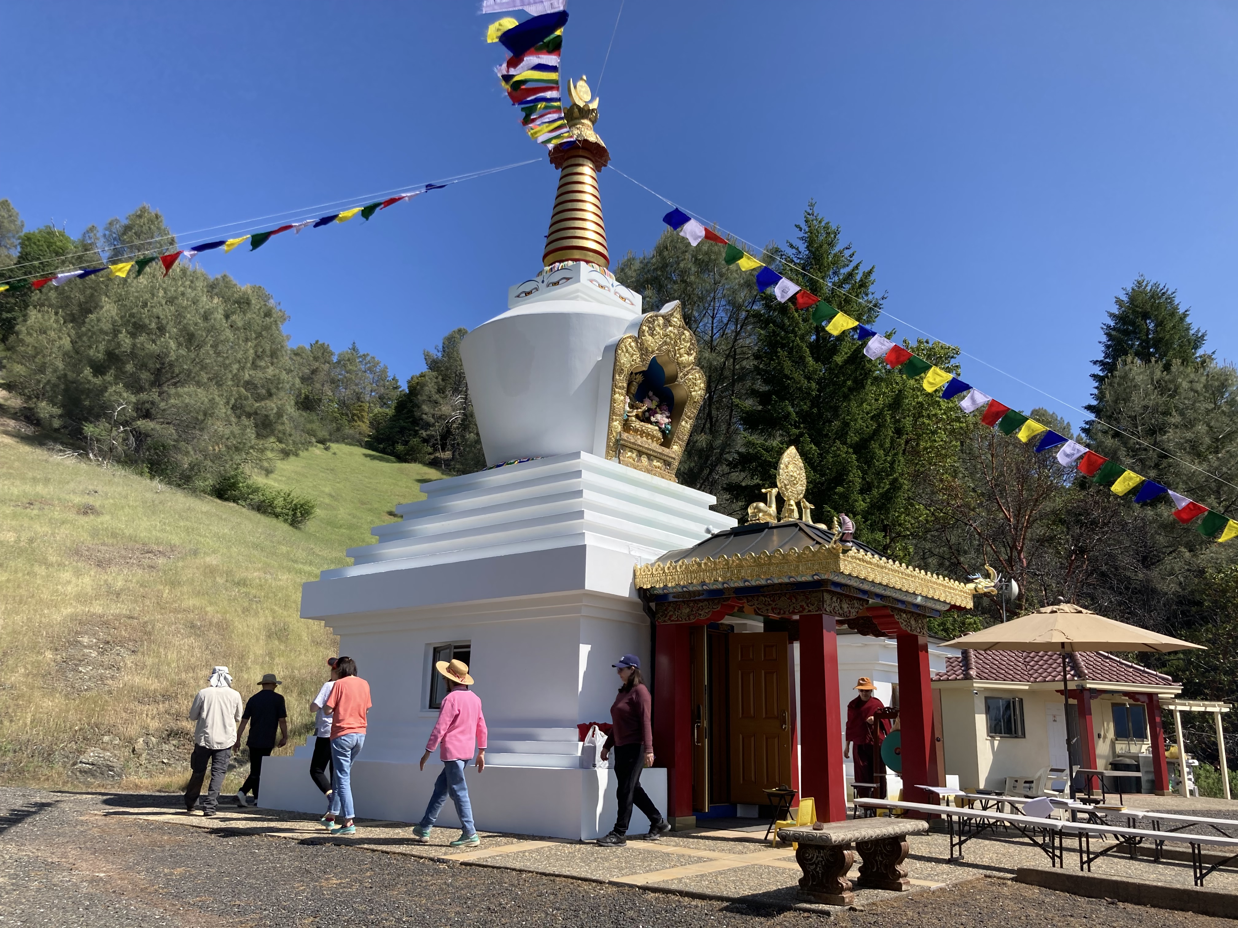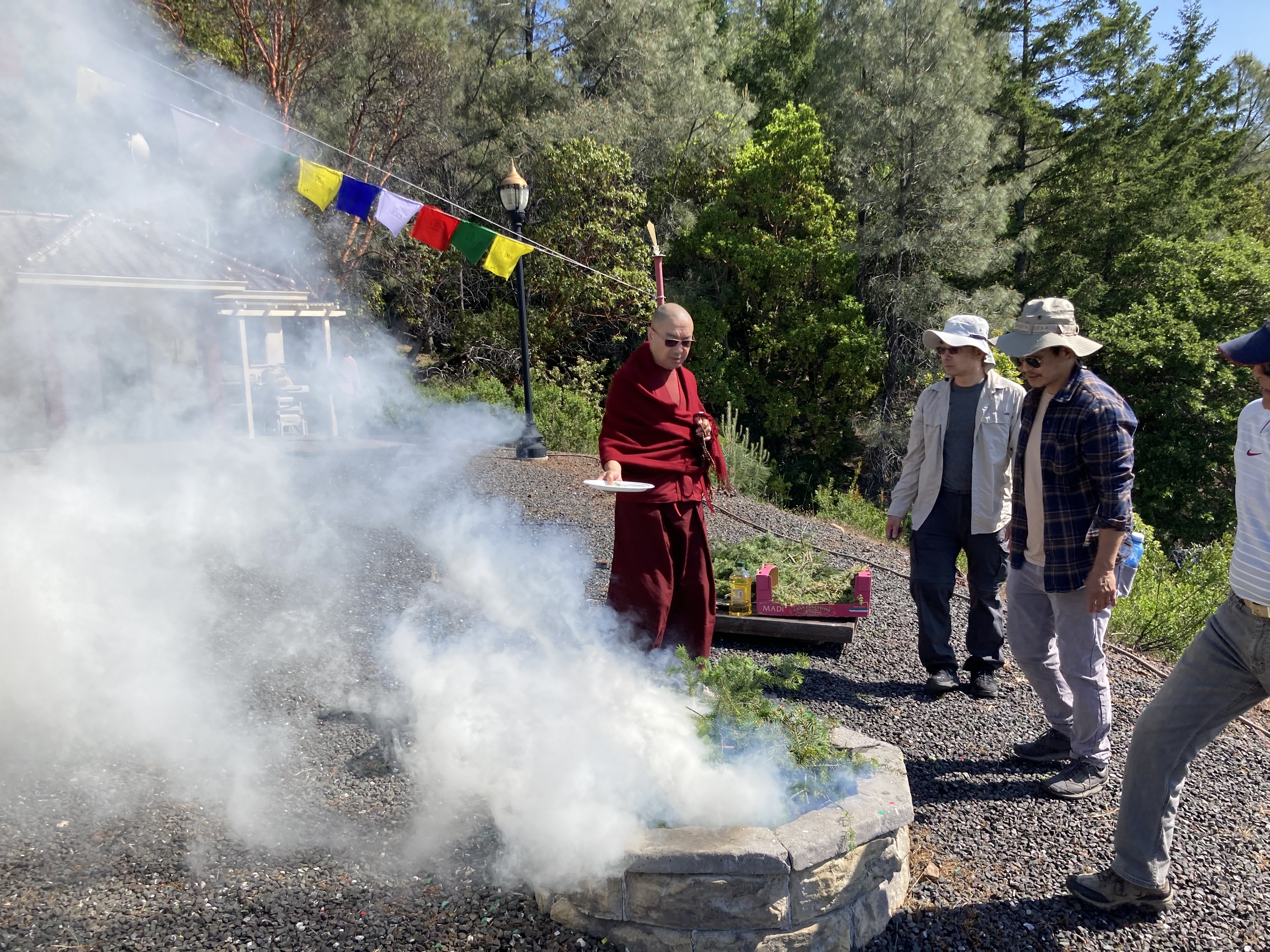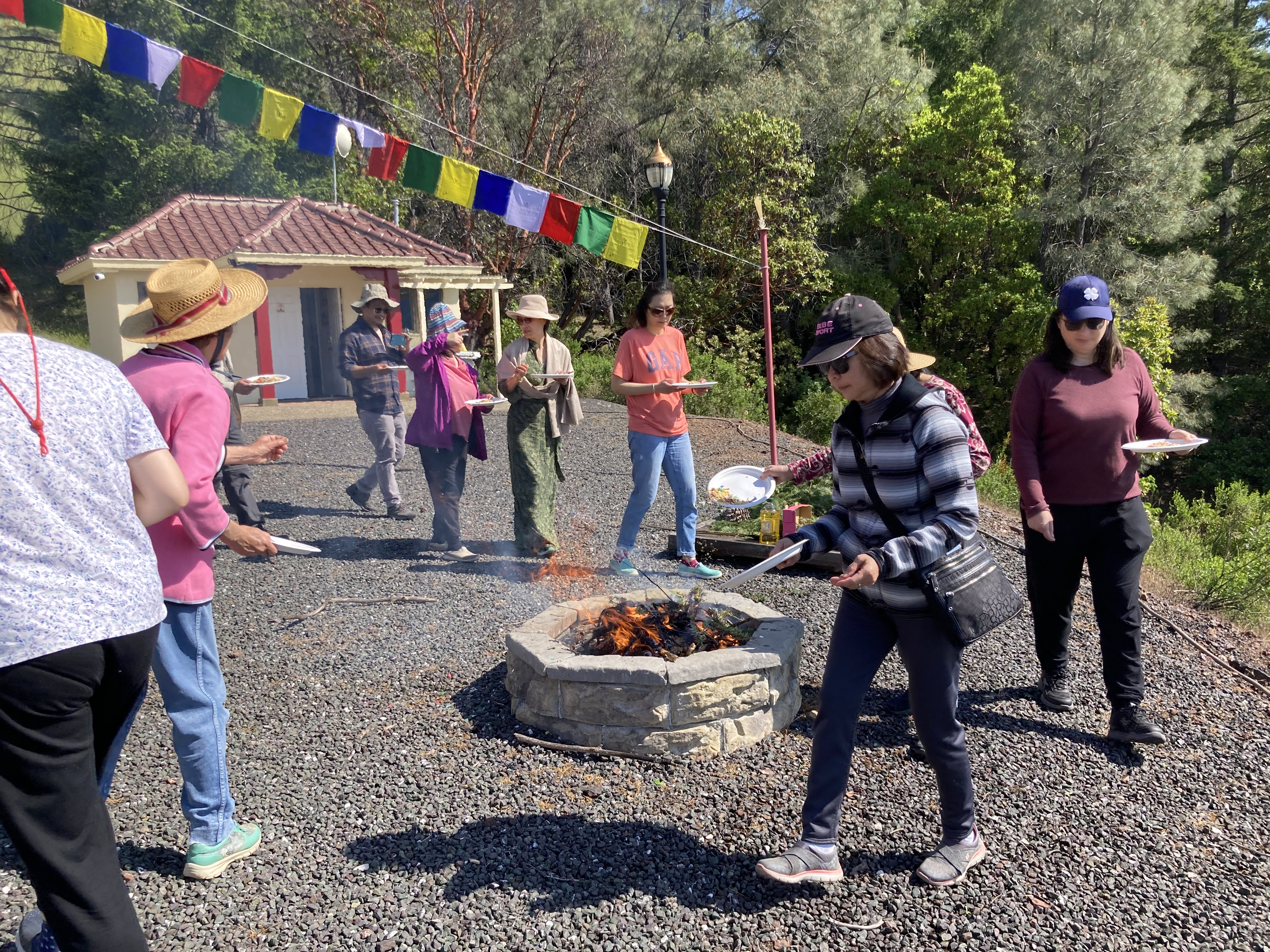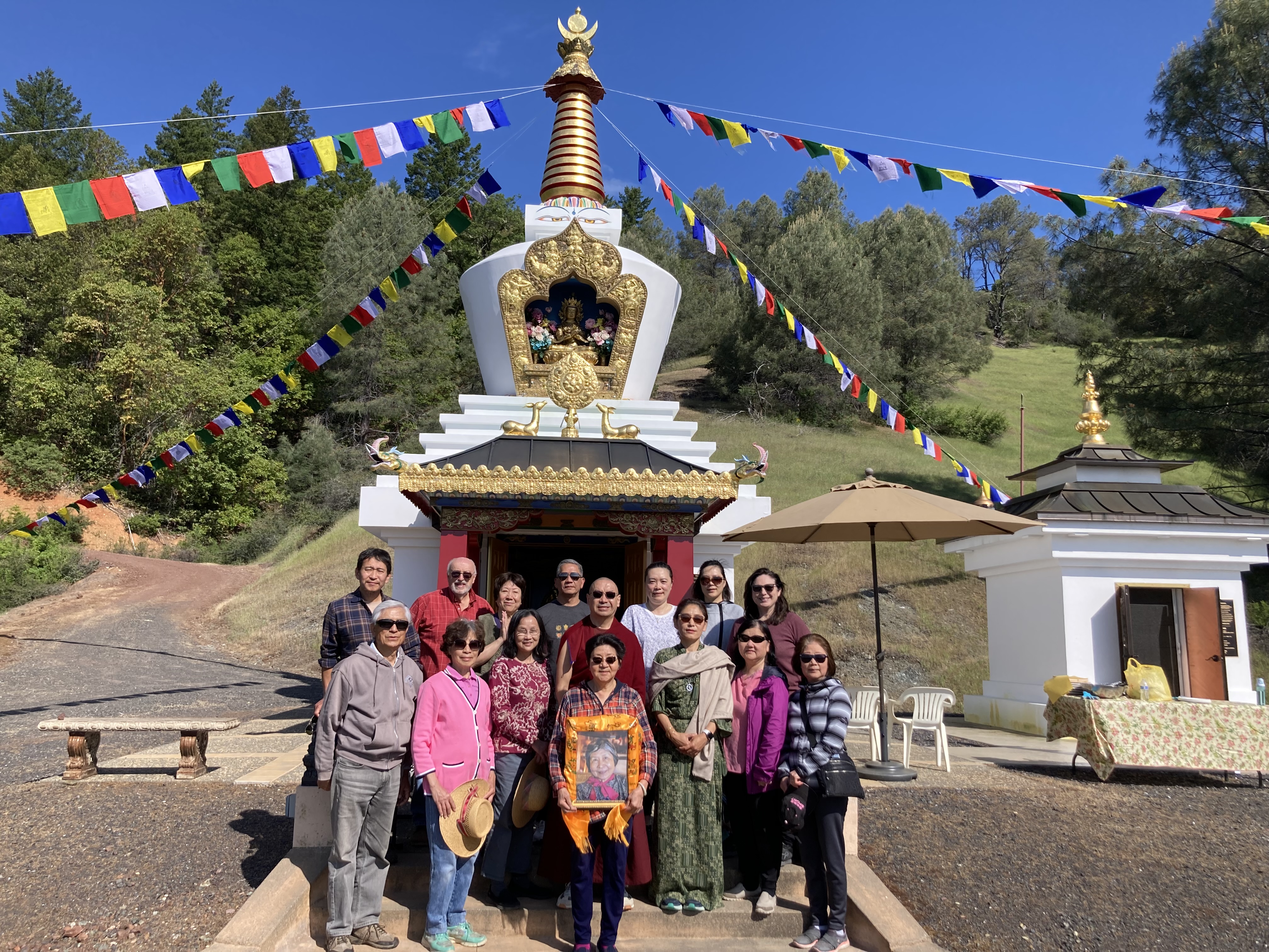 活動 佛塔周年慶 2023 By WebMaster on 13 六月, 2023 五 月二十八 日在北加州的吉祥金剛總持林, 中心慶祝菩提塔成立二十二 週年。在佛塔前舉行觀音菩薩火供,同修們一起唱誦佛塔經和 瑪哈嘎拉。 每位同修都非常高興和繞塔,並將功德迴向一切有情眾生. 一些同修為居住在佛塔附近的動物供養食物。 在回家之前,在主屋為每一位提供了美味可口的素食餐。特別感謝Tsangsar Tulku仁波切能夠參加慶祝活動並幫助更換新的祈禱旗的活動。 相關 分類:活動
