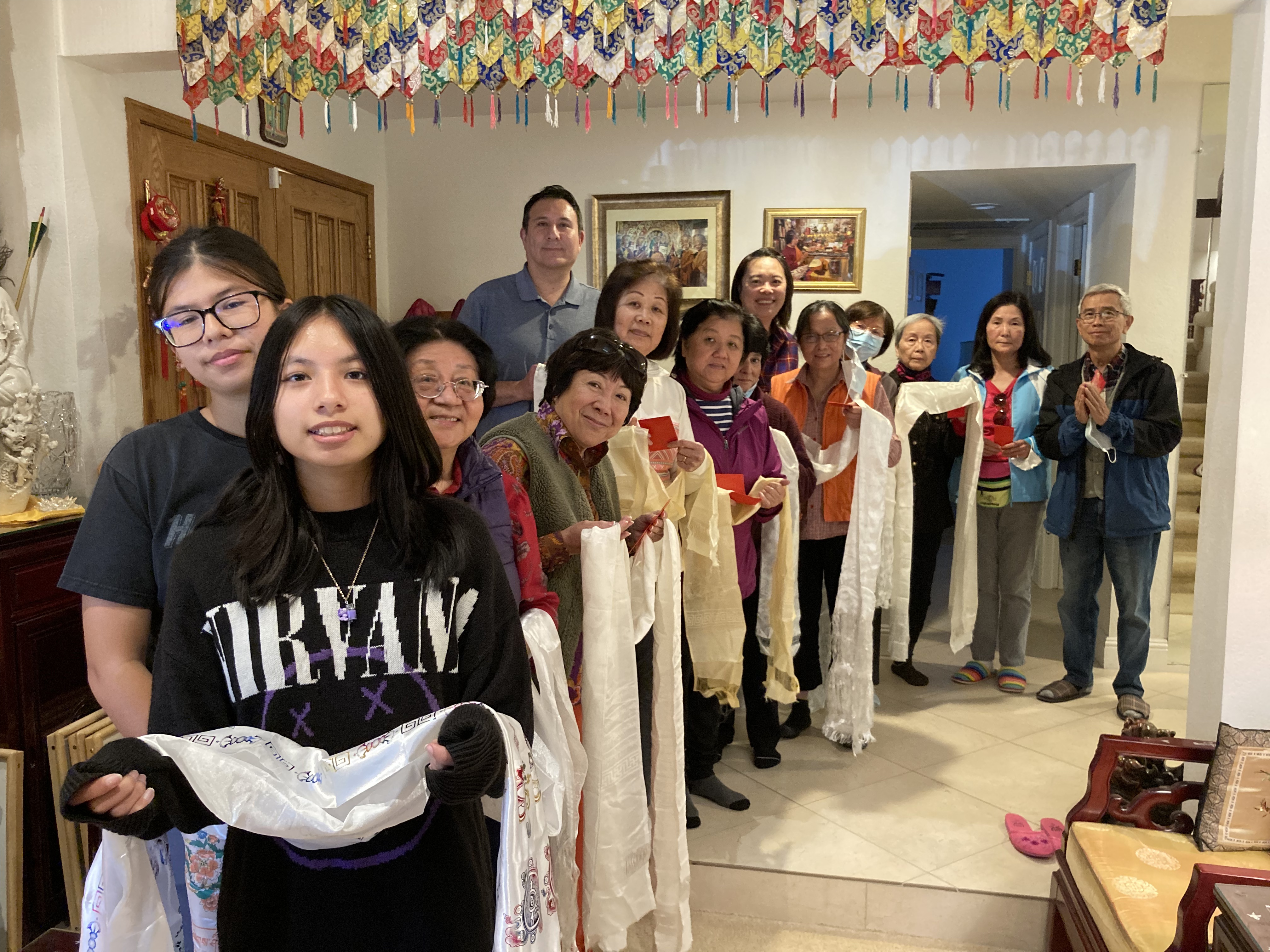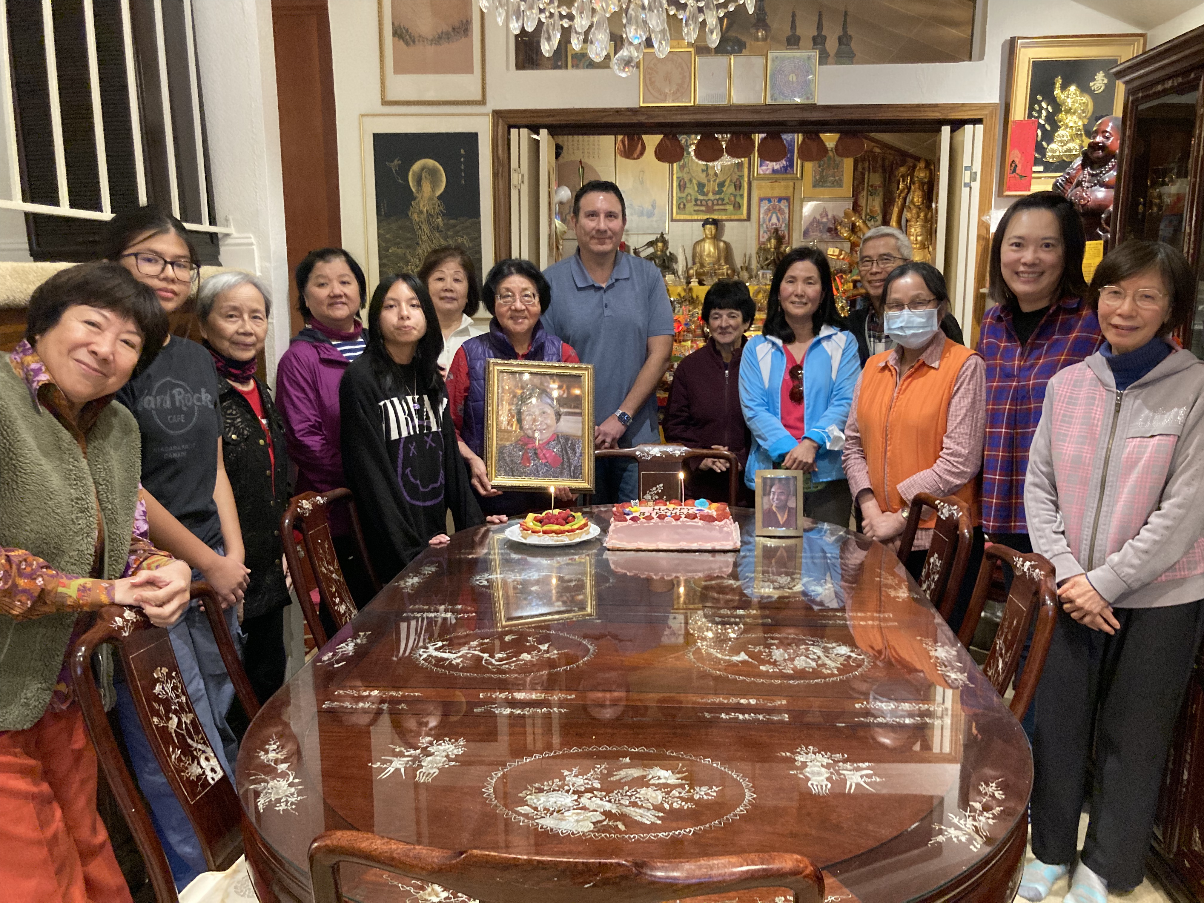 活動 2023 生日慶祝活動 By WebMaster on 20 十一月, 2023 11月12日,在中心舉行的特別誦經儀式,慶祝藥師佛佛誕和我們的尊寶上師明珠多傑仁波切的生日。 慶祝活動開始供養食物,接著進行祈禱和唱誦,包括《金剛手菩薩心咒》、《遥呼上師祈請文》和《藥師佛經》。同修們並為第十七世大寶法王、泰錫度仁波切和明珠多傑仁波切唱誦長壽祈請文。 誦經和祈禱結束後,同修們向明珠多傑仁波切獻上了特別的哈達和生日蛋糕來慶祝。 大家一同享用了豐盛的午餐。 相關 分類:活動